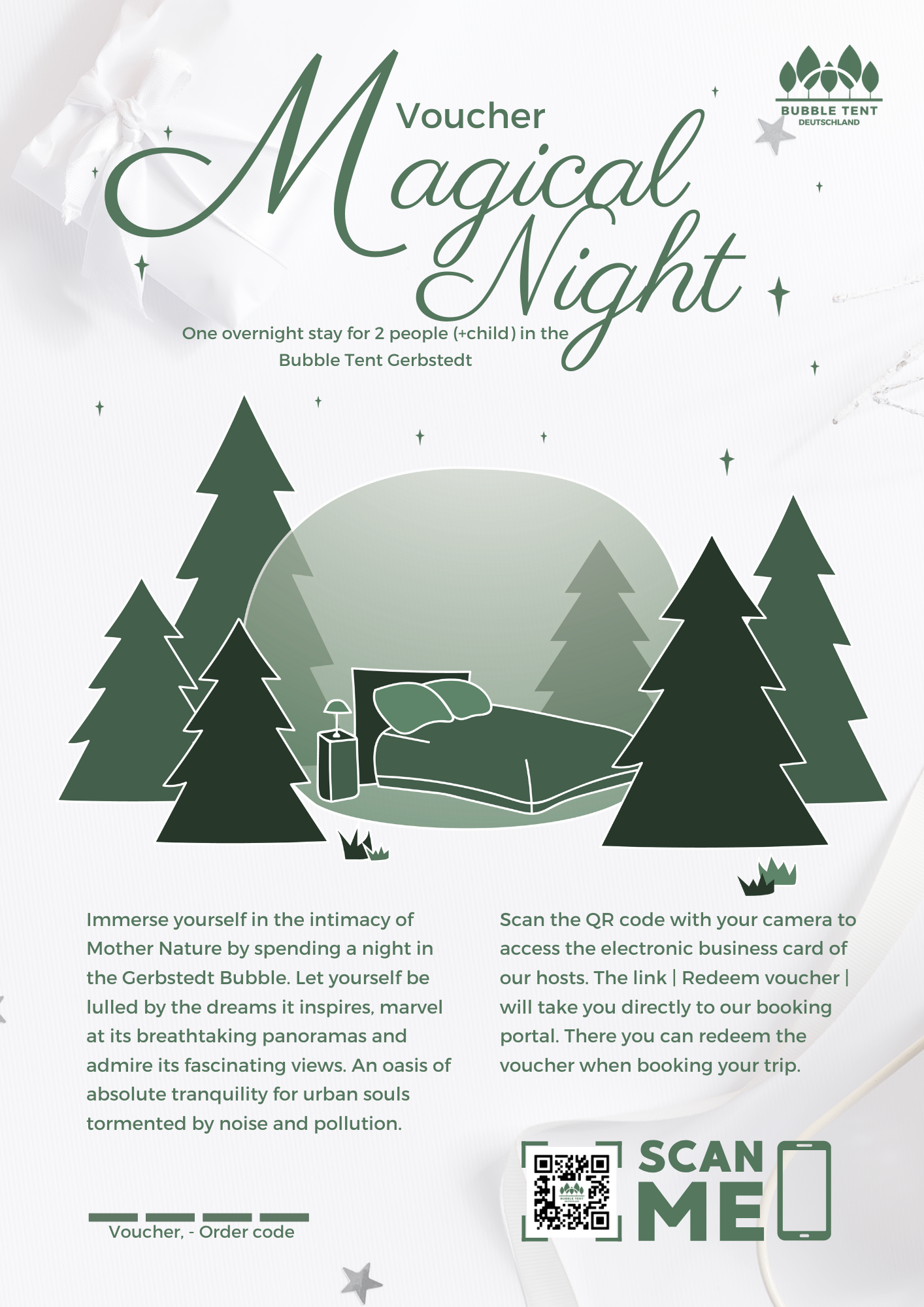 One night for 2 persons (+child) including breakfast in Bubble Tent Gerbstedt. With flexible date and 3 years validity.